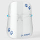 Simple but fun and cute navy blue animal paw prints on a face shield personalized with your name, for use at a vet office, animal rescue or groomer to help keep doggy drool out of your mouth and eyes. Paw foot print and text colors and font can be changed, just click ‘customize further’.