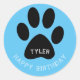 Paw Print Blue Happy Birthday Name Classic Round Sticker