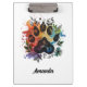 Paw print watercolor in an abstract Boho style with paint splashes of color embellished with leaves, orange yellow teal and purple colors, this is a great design for cat owners and dog owners and pet lovers in general. Personalize with your name! You can change the font as well as the size and color of the font.