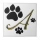 A tile with a paw print monogram design. Designed by © KatiesKreations.