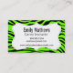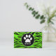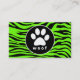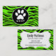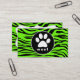 Paw Print on Bright Neon Green Zebra Stripes Business Card