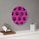 Paw Print Patterns Black Pink Glitter Cute Girly Large Clock