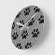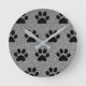 Paw Print Patterns Black Silvery Grey Glitter Cute Round Clock