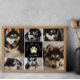 Black pet memorial photo print printed with a photo collage of six photos featuring your beloved pet. Add their name too in gold foil beneath a paw print.