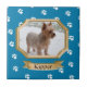 Pet lovers will cherish this paw print design pet frame with their favorite four legged friend's photo. Simply add a favorite pet photo and name and you have the perfect keepsake. Tile has a white paw print pattern with blue background.