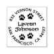 Custom paw print return address self inking stamp. Embellish your correspondence with this fun paw print self inking stamp for cat and dog owners and animal lovers. Personalize it with your own name or family name and address. Lovely return address rubber stamp for a cat or dog owner and an animal loving family.