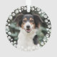 Custom pet ornament for dog (or cat) lovers features a photo of your furry friend on the front and back with a cute and modern round frame of paw prints and hearts. Simply upload a favorite photo of your pet to make this your own!