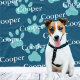 Dog blanket personalized with your pet's name on a blue background with paw prints.