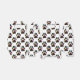 A pattern of dog paw prints with confetti a streamers on a favor box.