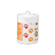 Design with a cute pattern of dog paw prints in orange and yellow and warm colours. This design looks as though a dog has walked over the product ! For dog lovers everywhere.