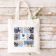 Budget tote bag with a collage of six dog photos around a black paw print and your dog's name.