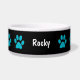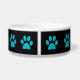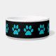 Paw prints large dog bowl with blue paws and black background and a place you can add your dogs name making this a classy pet bowl design. Use yours for a water dish, food dish, or catchall for all your doggy treats.