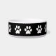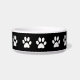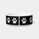 Paw prints small dog bowl with white paws and black background and a place you can add your dogs name making this a classy pet bowl design. Use yours for a water dish, food dish, or catchall for all your doggy treats.