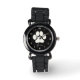 Keep track of time in style with this sleek “Paw Time” watch design. Featuring a soft beige dog paw print on a deep black background, paired with a matching neutral-toned clock face, this design blends simplicity with personality.