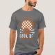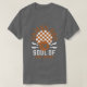 My 11 yo wore adult XL (5’7” 165#). The 8yo is small framed. She wore adult small and tied it in the back. Grandma wore adult large with long sleeve shirt underneath. Tall girl adult medium. Dark haired male adult large. Good quality dark Heather gray, Gildan brand shirt. -it was next up from basic choice and cost about $20 per shirt. Not too thick or thin. Washed and dried well, no major shrinkage. Not see-through. Can wear a bra under it fine. Screen print is just as shown and well done, front and back.
