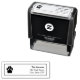 A simple address stamp featuring name and address with thin rectangle border. Illustration of paw print at left.