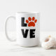 Show your love of your furry friends with this cute mug! The word LOVE is spelled out in black letters, with a red paw print in place of the letter O. Perfect as a Valentine's day gift for that dog or cat person in your life!