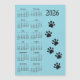 Pawprints Design 2026 Calendar Magnetic Card with customizable background color.