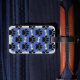 A pattern made of puppy paws and bones. Custom luggage tags with blue background.