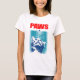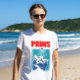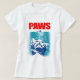 Paws features the perfect sea monster on textured water background with it's unsuspecting prey above. This design has bold red text and is based on a 1980's themed. #paws #cats #retro #predator #feline #mouse #colorful #popculture #1980's #humor #animal #cute