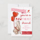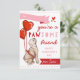 Cute classroom Valentines cards in a classic pink and red color palette feature "you're a paw-some friend" with a cute fawn pug dog wearing red heart shaped balloons. Personalize with your child's name beneath. Space provided at top for writing recipient names.