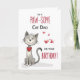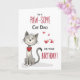 This fun and quirky birthday card from the cat is sure to make any cat dad smile! Featuring a charming gray kitty with wide eyes, a red heart collar, and floating red hearts, the design is clean and whimsical on a white background. The bold front message reads “To a PAW-some Cat Dad on Your Birthday!” and is paired with a humorous, heartfelt message inside that captures the everyday bond between cat and human. A great pick for any proud cat dad who understands the joys—and moods—of feline companionship.