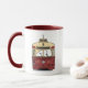 An updated version of our classic TTC PCC front-and-back mug, with a maroon handle and interior.