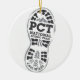 Lightweight, smooth, pure white ornament with nice sheen. Perfect size to be seen from across the room ... and to attract closer inspection! Price was great for ordering enough for the whole family! Clear, bold black design just as requested. Matches the order exactly. Just so nice!