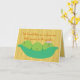 Cute triplet baby peas sit nestled into an open pea pod on top of a striped yellow background. The girl with her pink bow, eyelashes, blushing cheeks and one tiny tooth and the boys with their noses poking out over the edge make them especially adorable. The cover text says: "We heard there is a few new little sprouts in the garden" and the inside text reads: "Congratulations on your new triplet babies!" Customizable! Don't like the background color inside the card, font style, or font color? Click on the "Customize It" button to change. The striped background is also removable. Check out our other Pea Pod Pals, and New Baby products too. Want this design on something else? Just ask!