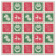 Christmas design with Christmas symbols in colorful squares and with snowflakes decoration