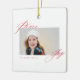 Peace And Joy Modern Calligraphy Red Script Photo Ceramic Ornament