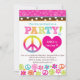 Bright, funky, colorful and fun "Peace & Love" hippie theme party invitation. Perfect for any age or any celebration with a groovy, peace hearts and flowers theme!