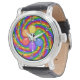 A very colorful design! The universal sign for peace is dead center on this watch face with rainbows spiraling out from it. A flower design in various colors also surrounds the peace symbol. Available in all styles and colors.