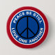 Our Peace Be Still Love One Another Red White Blue Large button packs a simple message perfect for today's challenging times. Design features the iconic Peace sign joined with white text and white and blue accented red background. Available in 3 magnet sizes. Volume discounts available!