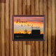 Wood wall plaque that features the photo image of a colorful sunset with house silhouette along with Bible verse text that reads, "Peace Be To This House." A thoughtful gift for family and friends!