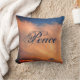 A beautiful blue sky and pink cloud photo is featured on this throw pillow and is complimented by the word peace which appears centered on this pillow. The solid dark blue color on the back of this pillow can be changed and there is plenty of room to add text or photo as you desire.