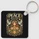 A serene, floral illustration of a woman forming a heart beneath doves and a glowing peace symbol, celebrating harmony and compassion.