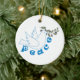 Peace custom ornament featuring a dove holding an olive branch and the word Peace along the chest of the dove with the 60’s sign of peace.