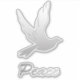 Sticker in a dove and the word peace in a silver, metallic effect gradient