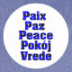 Do you like peace theme stickers? This sticker says the word peace in French, Spanish, Dutch, English and Polish with blue and black heart pattern.