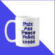 Do you like mugs with inspirational sayings? This mug says peace in English, Spanish, French, Dutch and Polish with blue hearts.