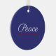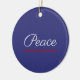 This ornament has one-worded message: peace. It's a simple looking word that carries a lot of meaning. It's good if you have it, and we all need it. Customizable. Sharon Lee Hudson.