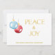 A beautiful Red and Blue Ornaments are near the words PEACE and JOY which are in yellow faux GOLD FOIL.