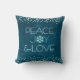 Peace Joy Love Chic Modern Snowflake on Blue Throw Pillow