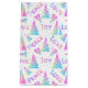 This is a beautiful Christmas wrapping paper featuring a pattern of 3 different Christmas tree designs and the words "Peace, Joy, Love" on a white background.