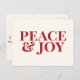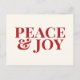 Peace & Joy - Modern Red Typography Christmas Postcard