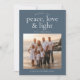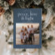 This Holiday Card features a photo on the front and 3 photos on the back. For this design all text is editable, as well as color of text and background.