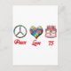 Peace Love and 75 years old with tie dyed peace symbol, heart and birthday cake