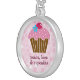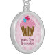This pink frosted chocolate cupcake against a polka-dotted background makes this necklace look good enough to eat. Great for any cupcake lover. Leave the message as is or customize it yourself. Available in alternate cupcake and color designs with matching products.
