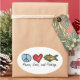 Here's a great fly fishing gift! Design features text that reads "Peace, Love, and Fishnig" with image of a blue peace sign, red heart, and cartoon image of a rainbow trout fish. Great for any fisherman or angler out there!
